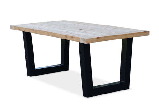 MAGAZIJNOPRUIMING - Uit voorraad leverbaar! Tuintafel met een blad van het duurzame Lariks/Douglas hout en zwarte stalen U-poten uit de collectie U...