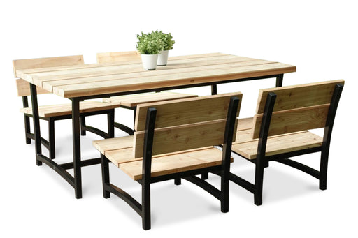 Low diningset douglas hout en stalen poten Elbo 6 persoons