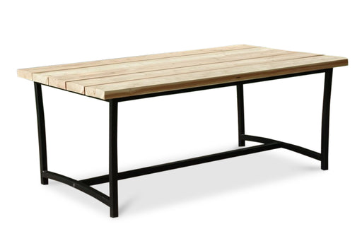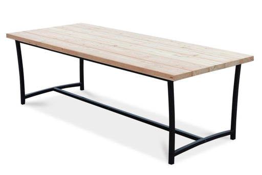 MAGAZIJNOPRUIMING - Uit voorraad leverbaar! Tuintafel met een blad van het duurzame Lariks/Douglas hout en zwarte stalen U-poten uit de collectie U...