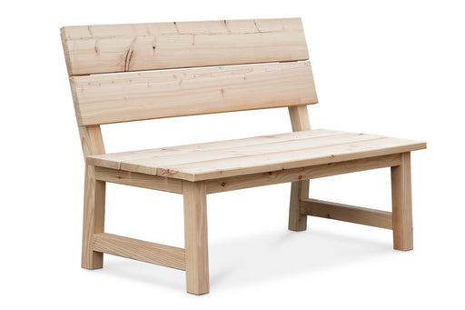 Lariks/Douglas houten tuinbank met rugleuning uit de Bonde collectie. De houten bank kenmerkt zich door de landelijke en robuuste uitstraling. De h...