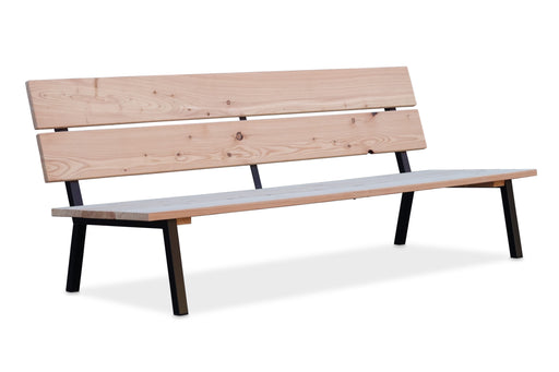 MAGAZIJNOPRUIMING - Uit voorraad leverbaar! Deze tuinbank Lono met rugleuning en stalen poten is gemaakt van Douglashout en heeft stalen poten. De ...